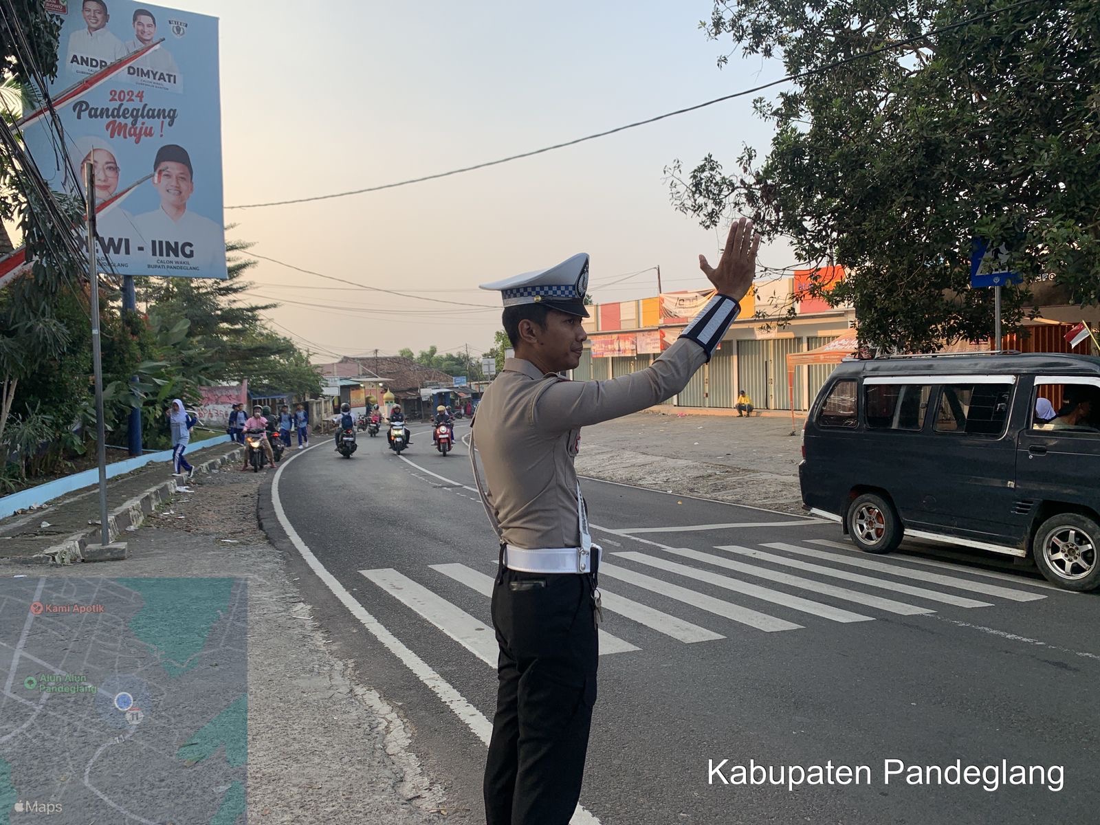 Guna menciptakan keamanan dan kelancaran lalu lintas di SMP 1 Pandeglang, Satuan Lalu Lintas (Satlantas) Polres Pandeglang melaksanakan pengaturan lalu lintas sore hari di SMP 1 kabayan. Kegiatan yang dilaksanakan pada hari Rabu , 14 Agustus 2024 pukul 15.30 WIB ini melibatkan sejumlah personel Satlantas.