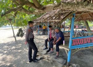 Personel Satpamobvit Polres Pandeglang Laksanakan Patroli Dialogis di Obyek Wisata Tanjung Lesung