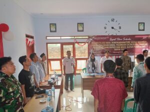 Pandeglang-banten , Personil Polsek Cimanuk polres pandeglang Brigadir Andika Hadiri Rapat pleno pantarlih di aula desa palanyar cipeucang pada hari rabu 14 agustus 2024.