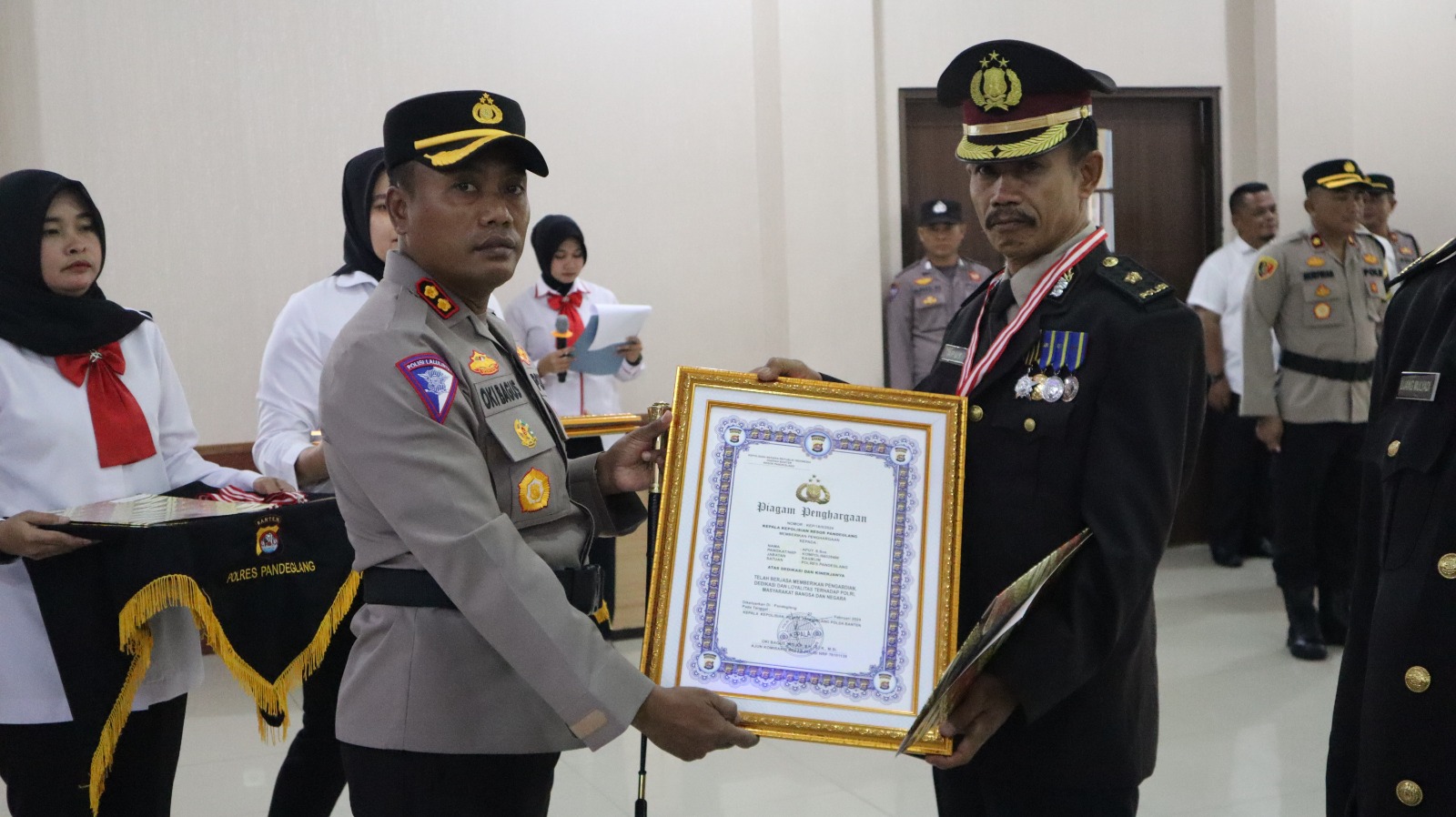 Kegiatan ini dihadiri oleh berbagai pejabat dan anggota Polres Pandeglang, serta keluarga dan rekan-rekan kerja Kompol Apuy. Dalam acara tersebut, IPTU Nurimah memberikan sambutan dan menyampaikan apresiasi atas dedikasi dan kontribusi Kompol Apuy selama bertugas di kepolisian.
