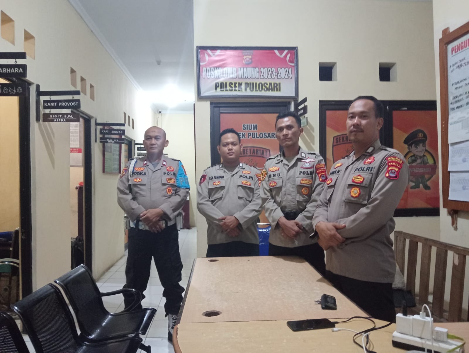 Pulosari – Tidak kenal lelah, AIPTU DODIK P.S., Kanit Provos Polsek Pulosari, kembali memastikan kesiapan anggota dalam menjaga keamanan masyarakat. Pada Hari Kamis (15/08/24), beliau melakukan pengecekan mendadak terhadap anggota yang sedang melaksanakan piket siaga di Mako Polsek Pulosari.