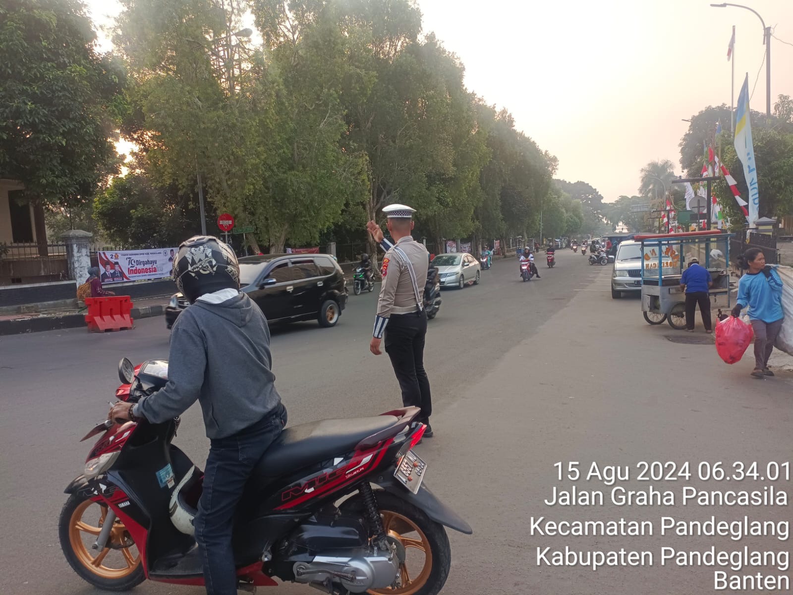 Pandeglang, 15 Agustus 2024 – Guna menciptakan keamanan dan kelancaran lalu lintas di sekitar sekolah, Satuan Lalu Lintas (Satlantas) Polres Pandeglang melaksanakan pengaturan lalu lintas pagi hari di depan SDN 4 . Kegiatan yang dilaksanakan pada , 15Agustus 2024 pukul 06.30 WIB ini melibatkan sejumlah personel Satlantas.