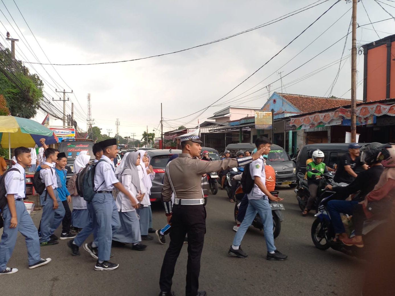 Pandeglang, – Guna menciptakan keamanan dan kelancaran lalu lintas di sekitar sekolah, Satuan Lalu Lintas (Satlantas) Polres Pandeglang melaksanakan pengaturan lalu lintas sore hari di depan SDN KADUMERAK . Kegiatan yang dilaksanakan inu melibatkan sejumlah personel Satlantas.