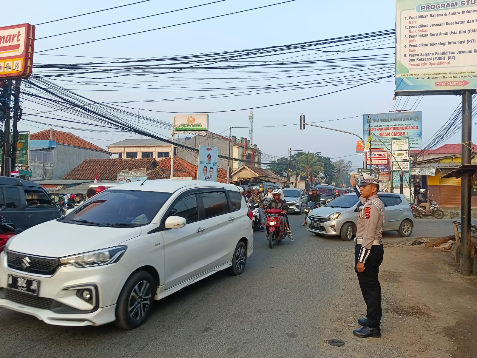 Satlantas Polres Pandeglang melaksanakan gatur Pagi di TL MAJA