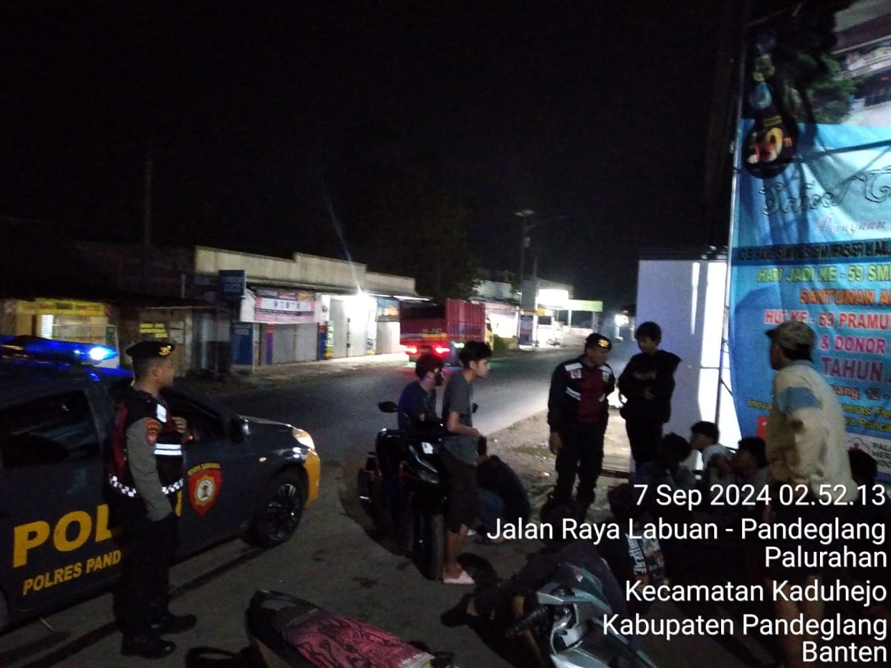 Pandeglang – Guna mengantisipasi timbulnya penyakit masyarakat yang meresahkan, Sat Samapta Polres Pandeglang melaksanakan patroli dialogis dengan berjalan kaki di kawasan Cipacung pada Jumat malam (6/9). Patroli ini dilakukan untuk menyambangi sejumlah pemuda yang sedang nongkrong dan memberikan pembinaan terkait pentingnya menjaga keamanan dan ketertiban.