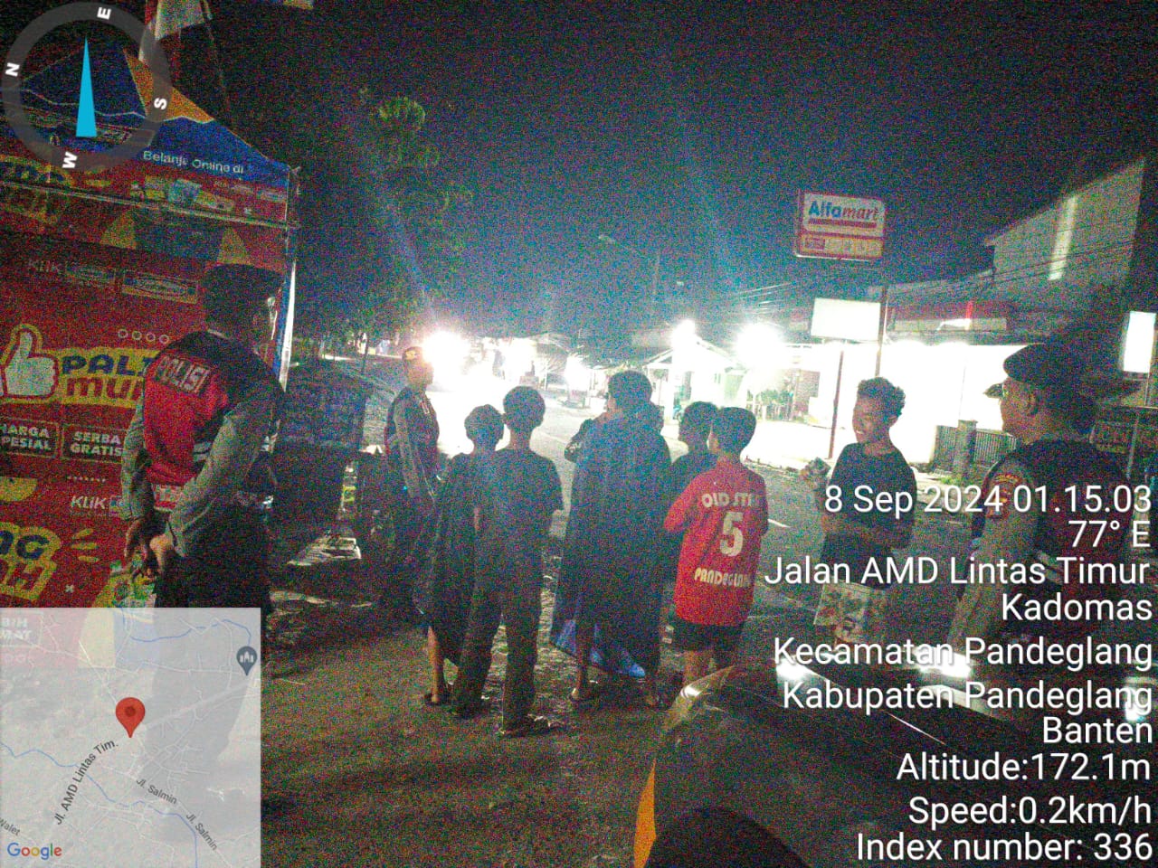Pandeglang – Dalam upaya menjaga ketertiban dan keamanan masyarakat, Sat Samapta Polres Pandeglang menggelar patroli malam pada Sabtu (7/9/2024) dan memberikan himbauan Kamtibmas kepada sekelompok remaja yang sedang nongkrong di pinggir jalan. Kegiatan ini bertujuan untuk mencegah penyalahgunaan minuman keras (miras) dan narkoba di kalangan remaja.