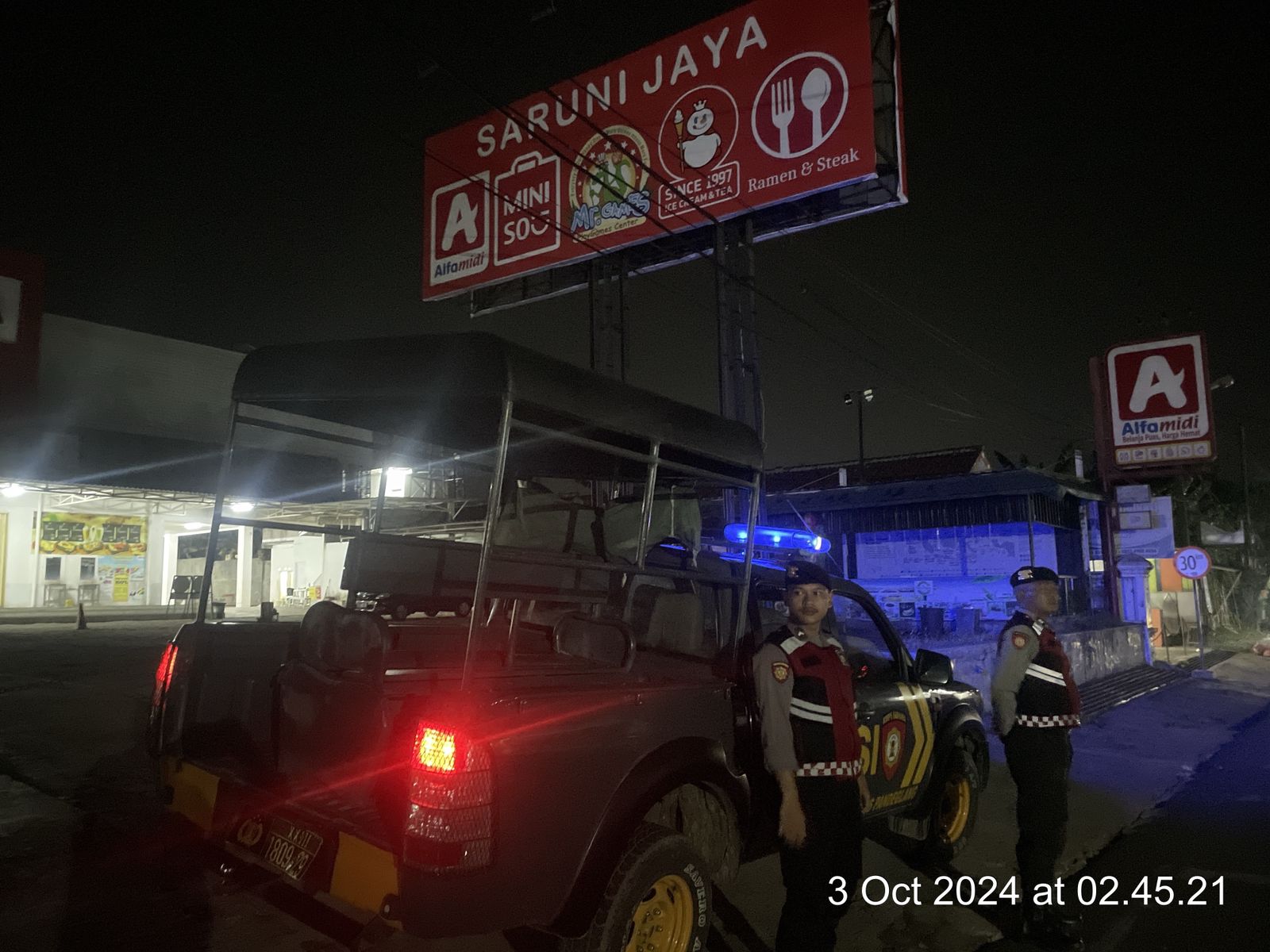 Pandeglang, 3 Oktober 2024 – Satuan Samapta (Sat Samapta) Polres Pandeglang melaksanakan patroli malam di kawasan Saruni Jaya pada Kamis, 3 Oktober 2024. Patroli ini bertujuan untuk mencegah terjadinya aksi balap liar yang kerap meresahkan masyarakat dan membahayakan keselamatan pengguna jalan lainnya.