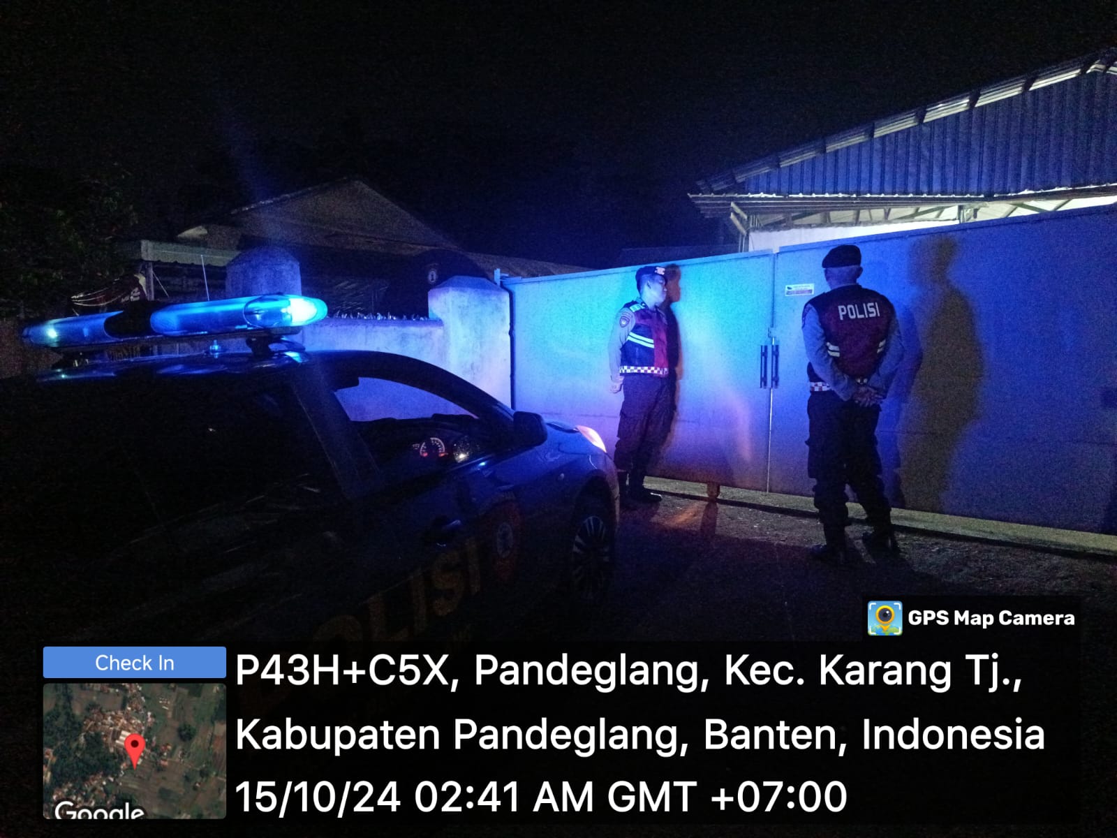 Pandeglang – Sat Samapta Polres Pandeglang melaksanakan kegiatan Blue Light Patrol di Gudang Logistik Komisi Pemilihan Umum (KPU) Pandeglang pada Selasa malam, 15 Oktober 2024. Patroli yang dipimpin oleh Kasat Samapta Polres Pandeglang, Iptu Akbar, ini bertujuan untuk memastikan keamanan logistik pemilu menjelang pelaksanaan pemilihan umum serentak.