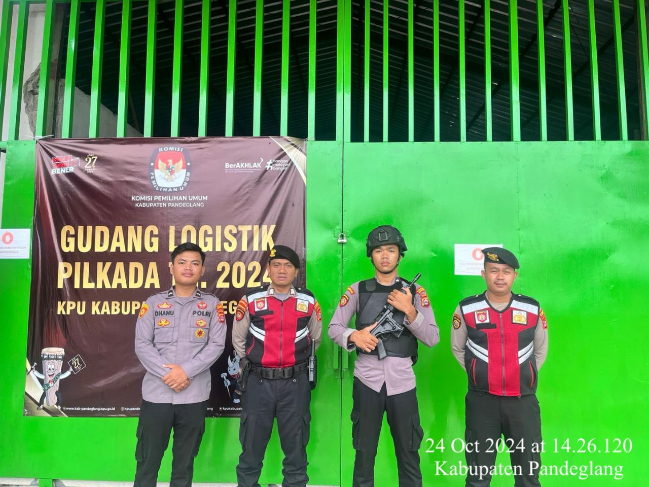 Pandeglang – Sat Samapta Polres Pandeglang menggelar kegiatan himbauan kepada personil pengamanan yang bertugas di Gudang Logistik KPU Pandeglang pada Kamis (24/10/2024). Kegiatan ini bertujuan untuk memastikan keamanan dan ketertiban selama proses pengawasan logistik pemilu menjelang Pilkada 2024.