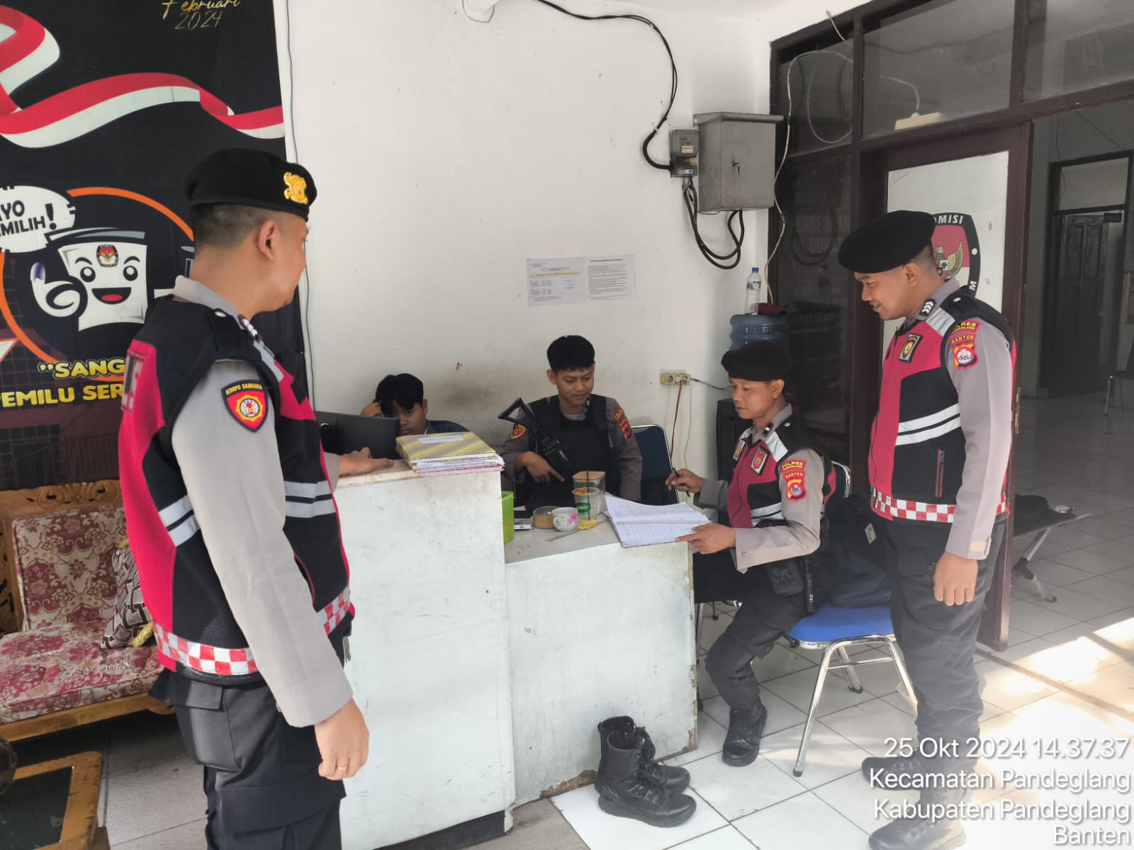 Pandeglang – Sat Samapta Polres Pandeglang menggelar kegiatan dialogis di Kantor KPU Pandeglang pada Jumat, 25 Oktober 2024. Kegiatan ini bertujuan untuk membangun komunikasi yang baik antara aparat kepolisian dan Komisi Pemilihan Umum (KPU) dalam rangka menjaga keamanan dan ketertiban menjelang pelaksanaan Pilkada 2024.
