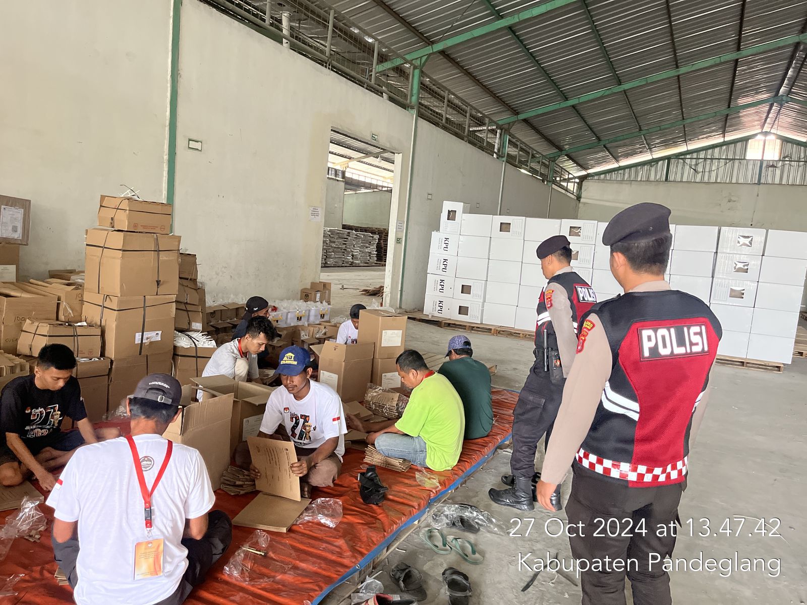 Pandeglang, 27 Oktober 2024 – Personel Sat Samapta Polres Pandeglang mengunjungi Gudang Logistik Komisi Pemilihan Umum (KPU) Pandeglang pada Minggu (27/10/2024) untuk memastikan keamanan dan kondusifitas menjelang pemilu. Kunjungan ini merupakan bagian dari upaya kepolisian dalam mendukung kelancaran proses pemilihan umum yang akan datang.
