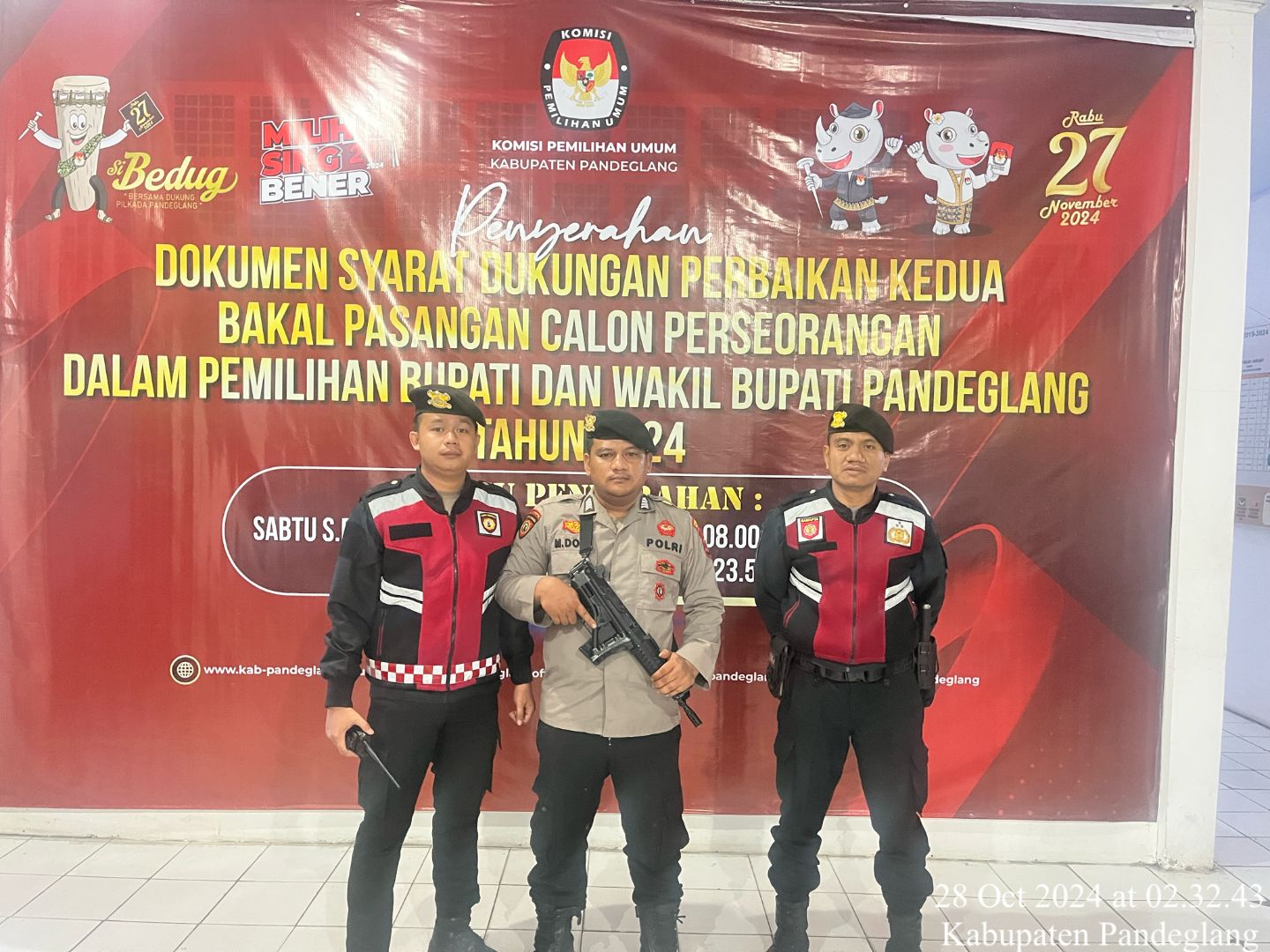 Pandeglang – Dalam upaya menjaga keamanan dan kelancaran selama tahapan Pemilihan Kepala Daerah (Pilkada) Pandeglang 2024, Sat Samapta Polres Pandeglang memberikan pengamanan dan siaga 24 jam di Kantor Komisi Pemilihan Umum (KPU) Pandeglang, mulai Senin, 28 Oktober 2024. Kegiatan ini dipimpin langsung oleh Kasat Samapta IPTU Akbar, dengan tujuan memastikan seluruh rangkaian proses Pilkada berlangsung aman dan kondusif.