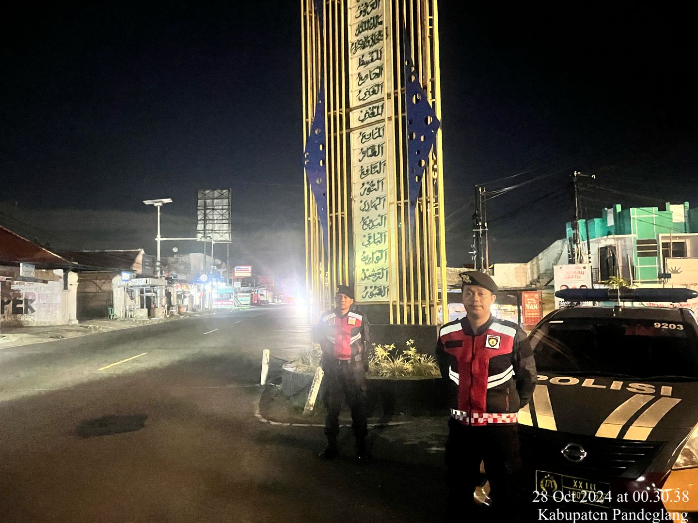 Pandeglang – Sat Samapta Polres Pandeglang melaksanakan patroli malam di kawasan Tugu Asmaul Husna pada Senin, 28 Oktober 2024. Kegiatan patroli ini dipimpin langsung oleh Kasat Samapta IPTU Akbar sebagai bagian dari upaya menjaga keamanan dan ketertiban di wilayah yang sering dikunjungi masyarakat, terutama pada malam hari.