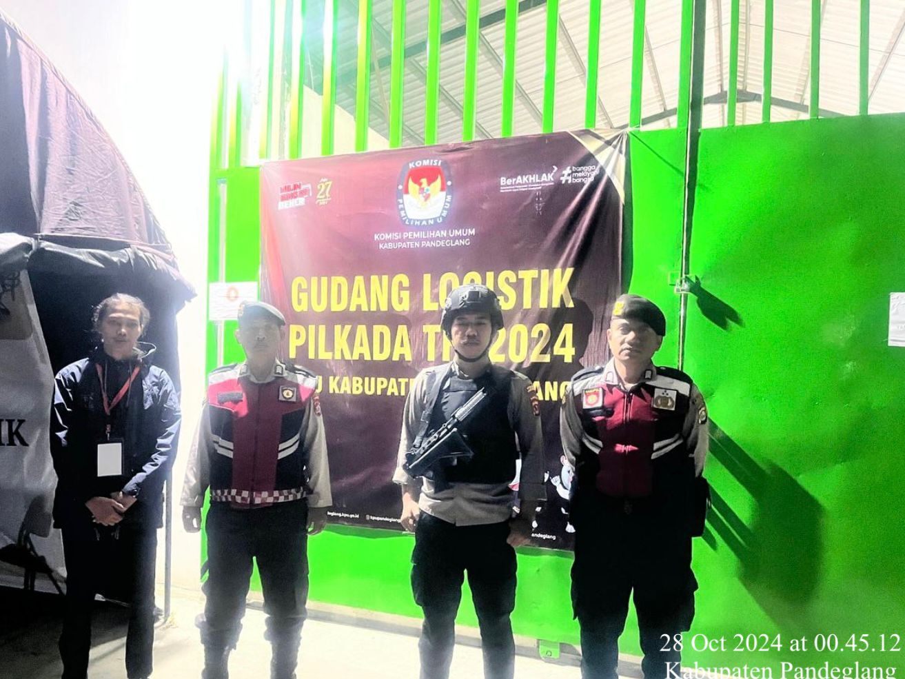 Pandeglang – Sat Samapta Polres Pandeglang melakukan patroli malam di gudang logistik Komisi Pemilihan Umum (KPU) Pandeglang pada Senin, 28 Oktober 2024. Patroli yang dipimpin oleh Kasat Samapta IPTU Akbar ini bertujuan memastikan keamanan di lokasi penyimpanan logistik pemilu serta memberikan rasa aman bagi petugas yang berjaga.