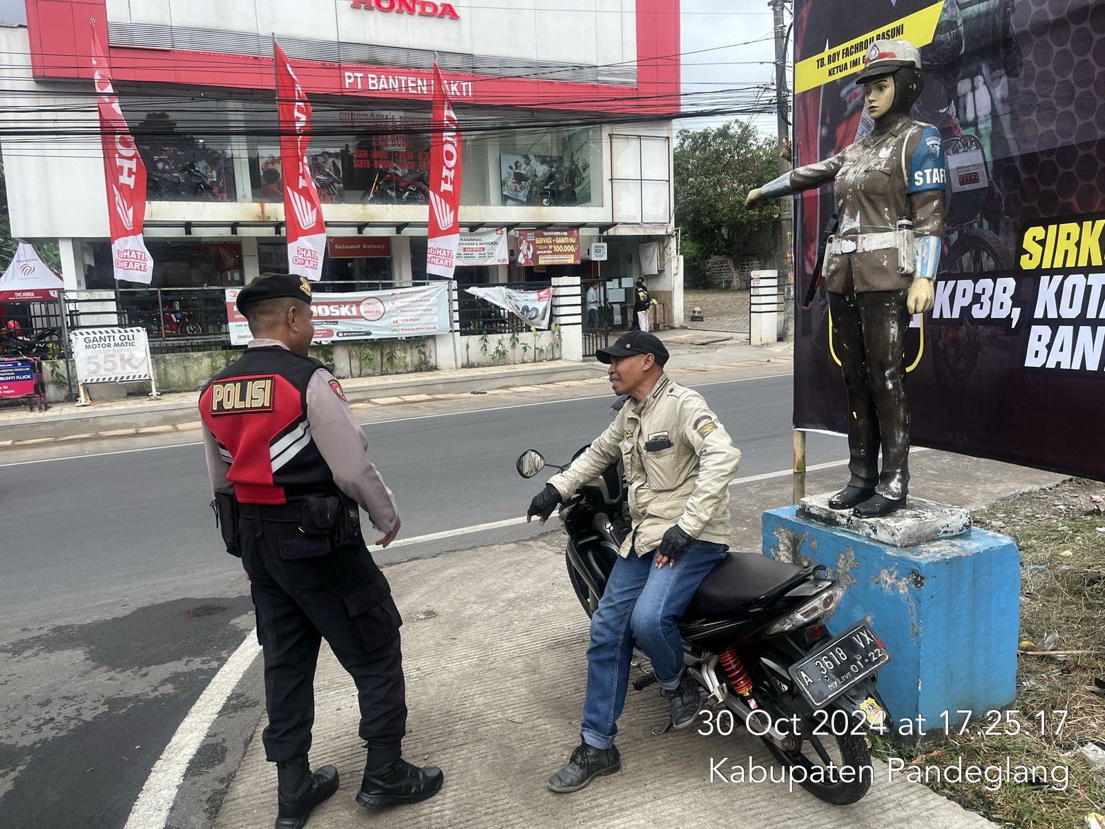 Pandeglang, 30 Oktober 2024 – Personel Sat Samapta Polres Pandeglang melaksanakan kegiatan sambang ke pangkalan ojek di Pertigaan Cipacung pada Rabu, 30 Oktober 2024. Kegiatan ini dilakukan untuk memberikan himbauan keamanan dan ketertiban masyarakat (kamtibmas) kepada para pengemudi ojek serta menciptakan suasana yang aman di lingkungan sekitar.