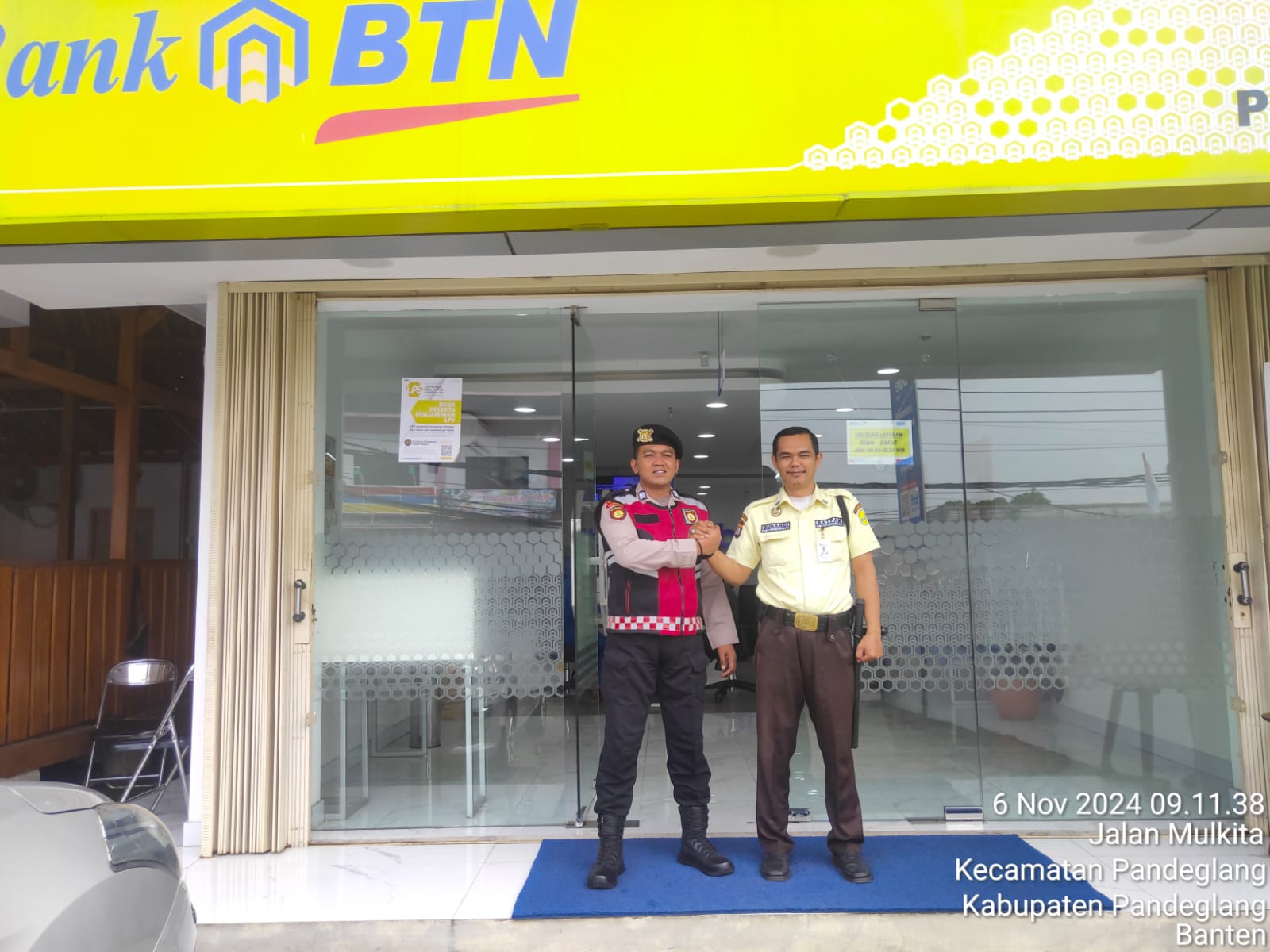 Pandeglang – Dalam rangka memastikan keamanan di obyek vital, Satuan Samapta Polres Pandeglang melaksanakan patroli di Bank BTN Pandeglang pada Rabu, 6 November 2024. Kegiatan patroli ini dilakukan untuk memantau kondisi keamanan di area perbankan dan memberikan rasa aman bagi karyawan maupun nasabah yang beraktivitas di bank tersebut.