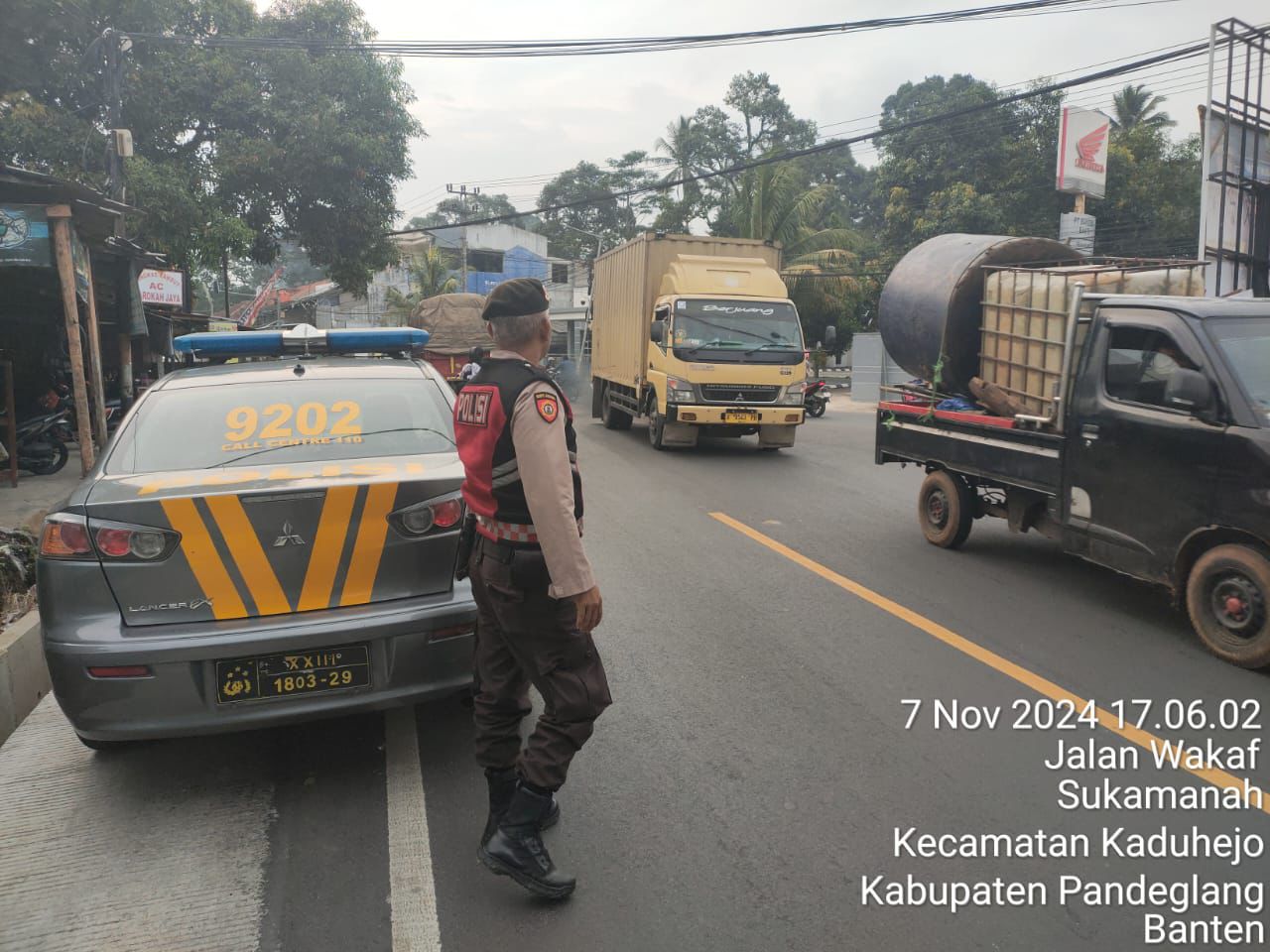Pandeglang – Guna memastikan kelancaran dan keamanan arus lalu lintas, personel Sat Samapta Polres Pandeglang melaksanakan kegiatan pengaturan lalu lintas di kawasan pertigaan Cipacung, Kamis, 7 November 2024. Pengaturan ini dilakukan untuk mengantisipasi kemacetan serta menjaga keselamatan para pengguna jalan, terutama pada jam-jam sibuk.