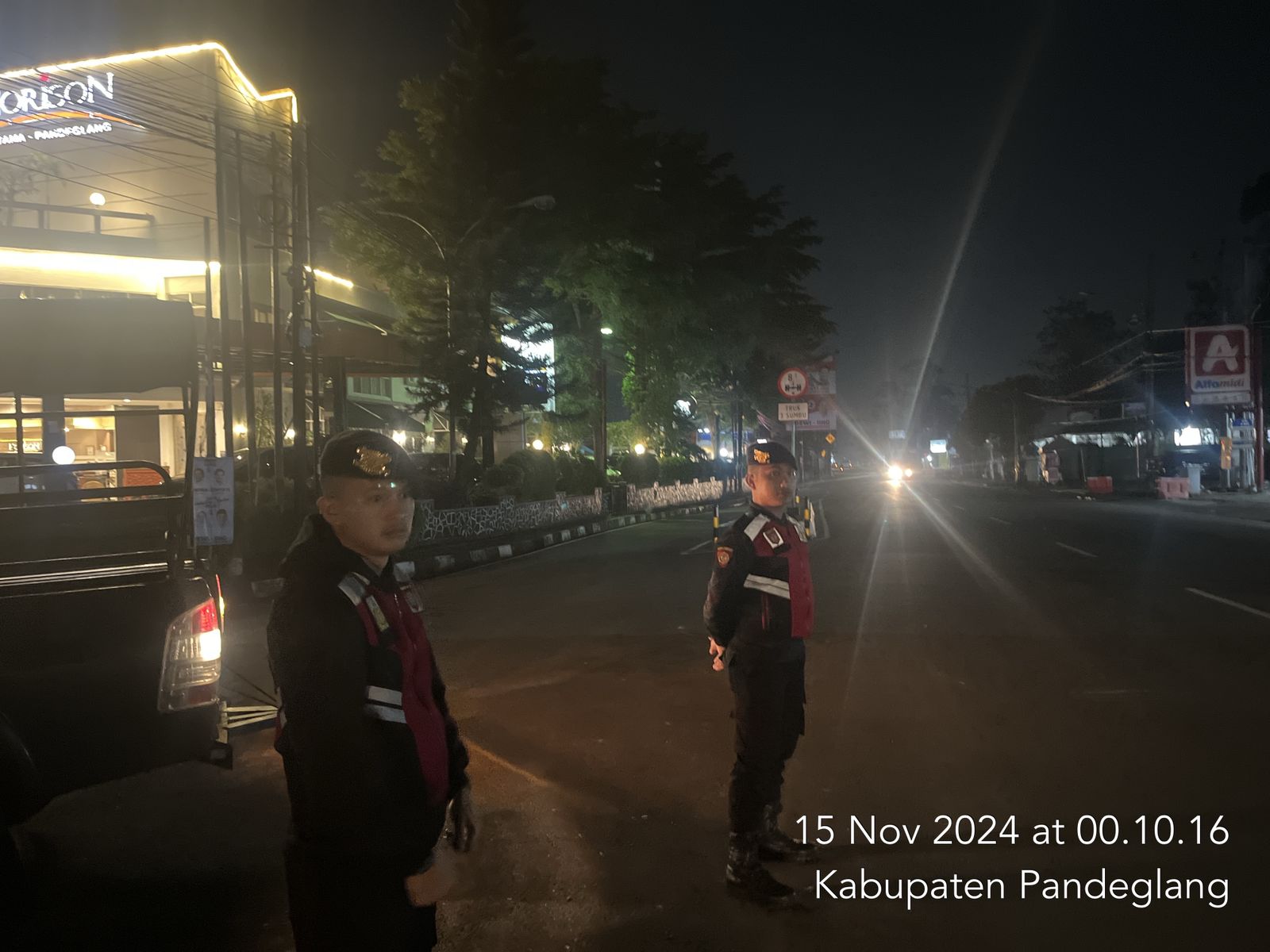 Sat Samapta Polres Pandeglang Gelar Strong Point Malam di Depan Hotel Horison Altama Pandeglang