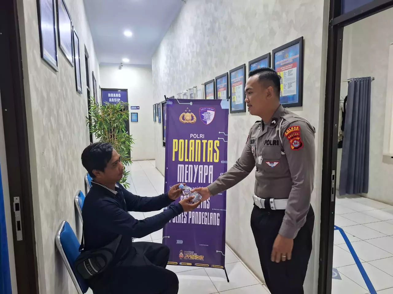 Pandeglang – Satuan Lalu Lintas (Satlantas) Polres Pandeglang melaksanakan kegiatan Polantas Menyapa kepada masyarakat pemohon Surat Izin Mengemudi (SIM) di Satuan Penyelenggara Administrasi SIM (Satpas) Polres Pandeglang, Jumat (24/10).