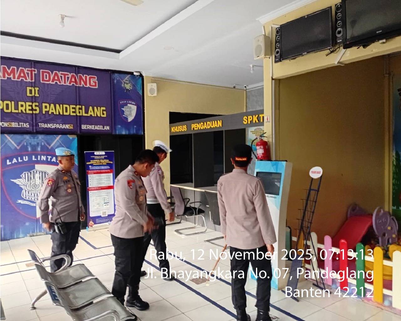 Pandeglang – Dalam upaya meningkatkan mutu pelayanan publik serta mewujudkan pelayanan kepolisian yang transparan dan bebas dari praktik korupsi, Kapolres Pandeglang AKBP Dr. Dhyno Indra Setyadi, S.I.K., M.Si. melaksanakan pengecekan langsung terhadap sarana dan prasarana ruang pelayanan masyarakat, seperti Sentra Pelayanan Kepolisian Terpadu (SPKT) dan Satuan Penyelenggara Administrasi (Satpas) SIM Polres Pandeglang, pada Rabu (12/11/2025).
