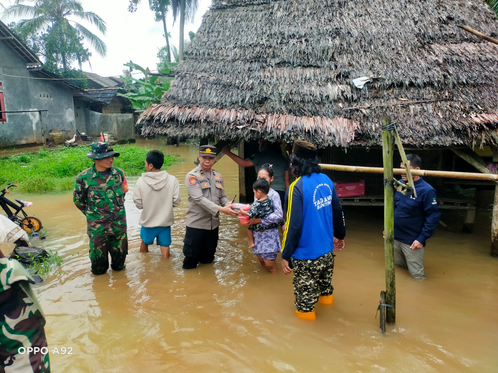 Pandeglang – Polsek Pagelaran Polres Pandeglang bersama unsur Muspika Kecamatan Pagelaran menyalurkan bantuan sosial kepada korban banjir yang terdampak di Kampung Pematang, Desa Bulagor, pada Kamis, 18 Desember 2025.