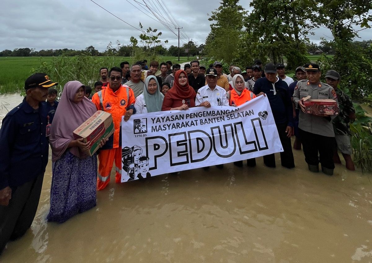 Pandeglang – Kapolsek Panimbang AKP Ugum Taryana bersama Paguyuban Banten Selatan dan Camat Sobang Mahpudin melaksanakan kegiatan pendistribusian bantuan kemanusiaan kepada masyarakat Desa Kuta Mekar, Kecamatan Sobang, Kabupaten Pandeglang, yang terdampak akibat luapan Sungai Cilatak.