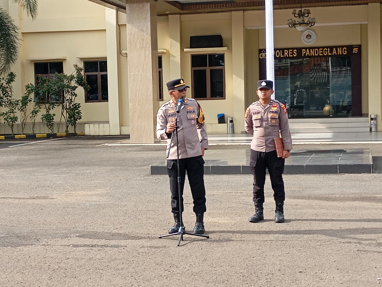 Apel kesiapan ini diikuti oleh para perwira pengendali, personel gabungan dari fungsi operasional Polres Pandeglang, serta satuan tugas Operasi Pekat Maung 2026.
