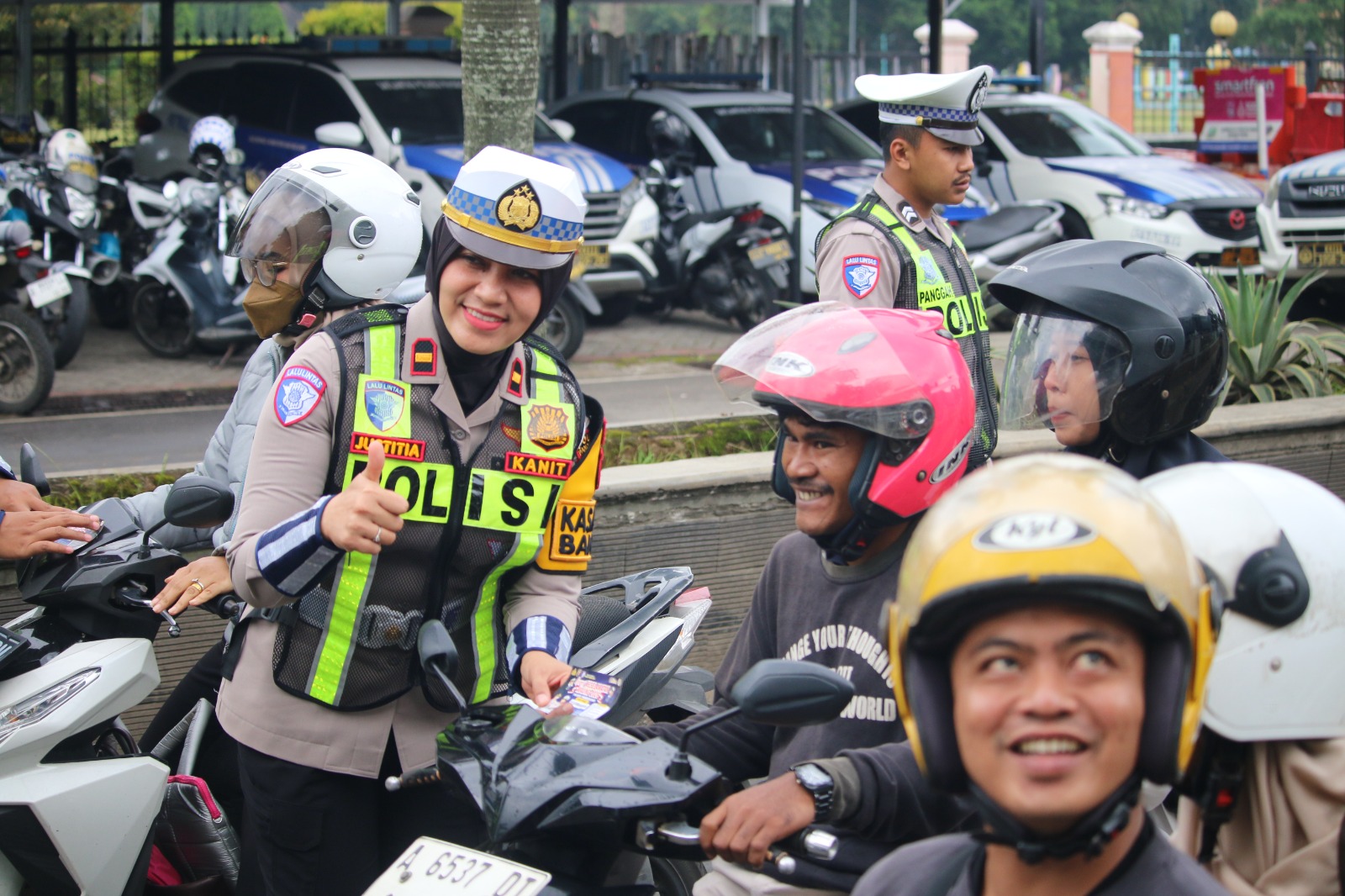 “Melalui kegiatan himbauan ini, kami mengajak seluruh pengendara agar selalu mematuhi peraturan lalu lintas, menggunakan helm berstandar SNI bagi pengendara sepeda motor, memakai sabuk pengaman bagi pengemudi mobil, serta tidak menggunakan ponsel saat berkendara. Keselamatan merupakan kebutuhan bersama dan harus menjadi budaya dalam berlalu lintas,” ujar IPDA Fiat Justitia.