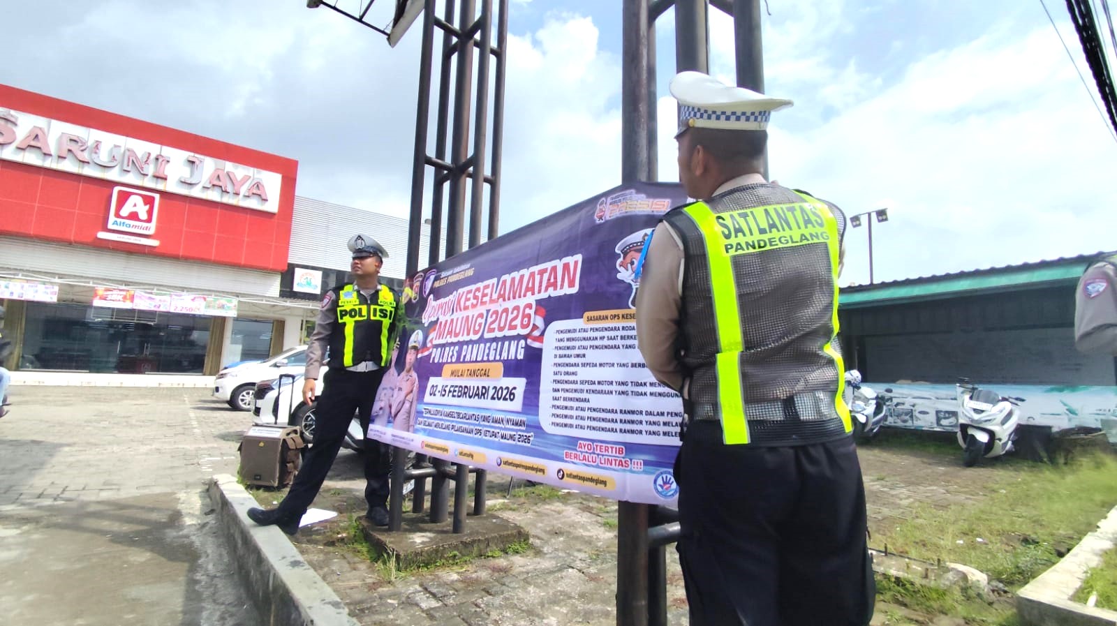 Pandeglang – Dalam rangka mendukung pelaksanaan Operasi Keselamatan Tahun 2026, Satuan Lalu Lintas (Satlantas) Polres Pandeglang memasang sejumlah spanduk imbauan keselamatan berlalu lintas di berbagai titik strategis wilayah Kabupaten Pandeglang, pada Rabu (11/2/2026).