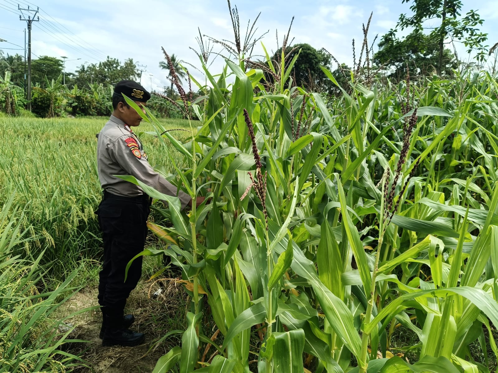 “Pengecekan ini kami lakukan untuk melihat secara langsung kondisi bibit jagung yang ditanam di lahan seluas satu hektar di Kampung Bunar. Hal ini juga sebagai bentuk dukungan Polri terhadap sektor pertanian dan ketahanan pangan di wilayah,” ujar IPTU Ugum.