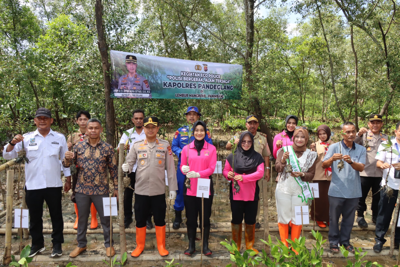 Pandeglang – Polres Pandeglang menggelar kegiatan Eco Police melalui aksi penanaman mangrove dengan tema “Polisi Bergerak,